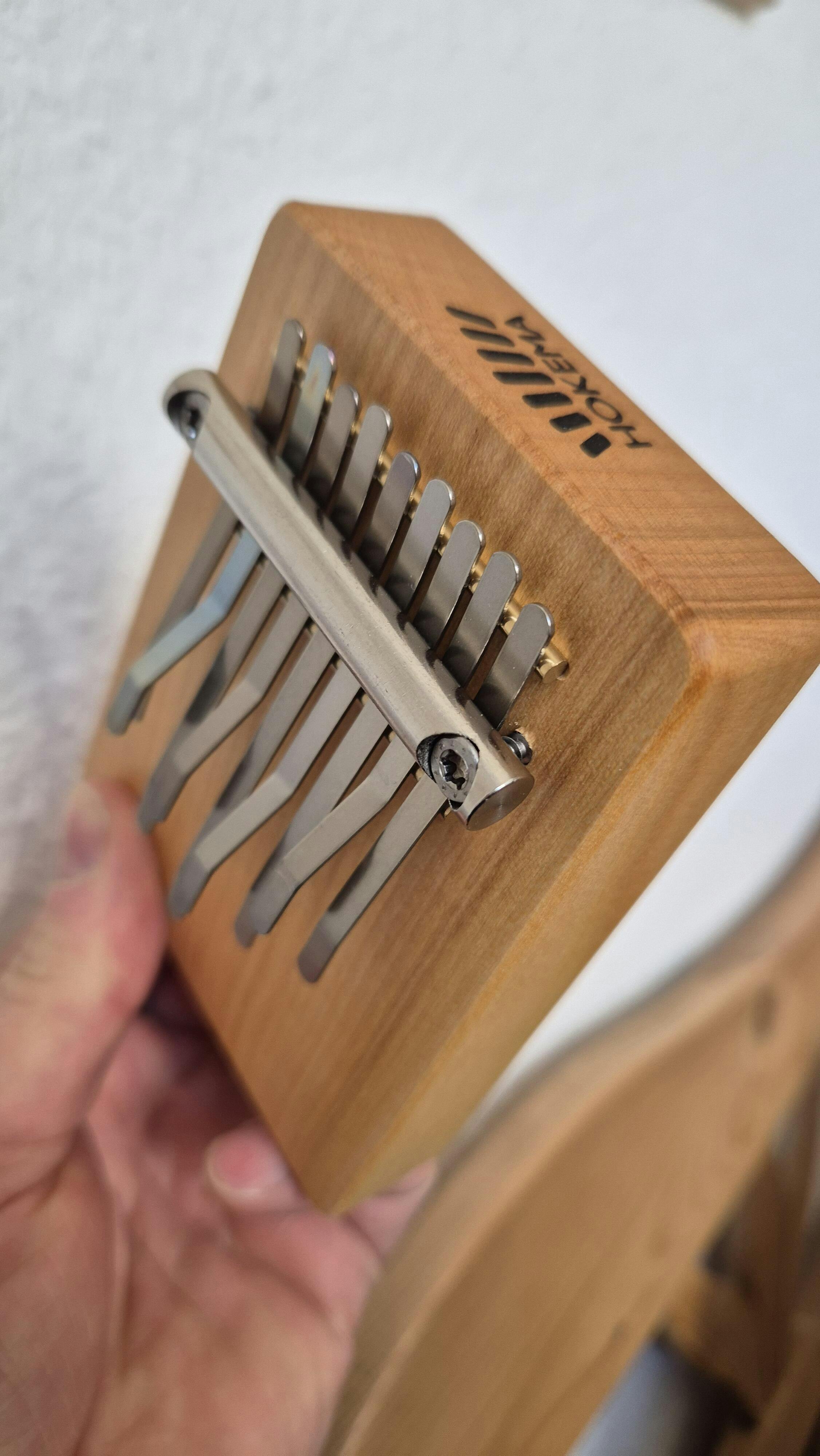 Willkommen in der Welt der Musik mit der Hokema Kalimba B9, einem wunderbar handgefertigten Daumenklavier aus massiver amerikanischer Kirsche. Dieses in Deutschland hergestellte Instrument kombiniert Nachhaltigkeit und künstlerische Handwerkskunst in einem.